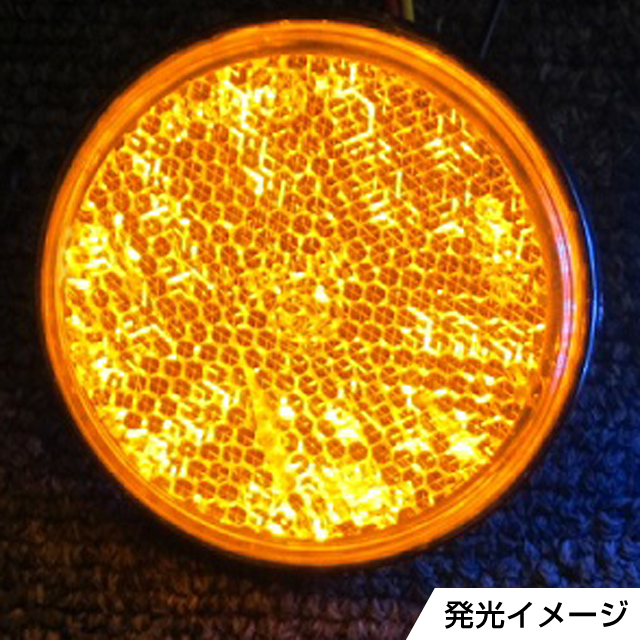 薄型LEDを内蔵した発光するリフレクターです。使い方色々、あとづけ感が少ないのに光るとインパクトがあり安全性もアップします。【特 徴】製品はすべて3本配線でテールランプのような強弱発光ができます。もちろん結線により「強」のみ「弱」のみも可能です。配線は6ミリネジの中を通っていますので、バイクへの取付時もスマートにできます。サイズ:【円形】 直径×厚: 58×10mm通常 オレンジ/発光オレンジ