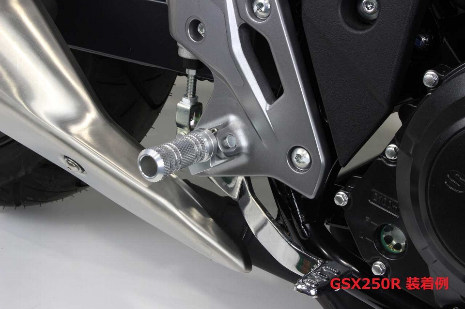 ヤマハ YZF-R25/MT-25用でご好評頂いているマシンドステップバーのラインナップに最新車両のCBR250RR 17年、 GSX250R 17年 に取付可能なホンダ/スズキタイプが追加されました。【特徴】アルミA2017材削り出しのアルミステップバー、ステップ部は滑りにくいローレット加工仕上げ。MADE IN JAPAN【適合車種】・HONDACB1300SF(98〜17年)CB1300SB(05〜17年)CBR1100XX(96〜07年)CBR1000RR(04〜09年)CBR900RR/929RR(92〜01年)CB400SF Spec-1/2/3/Revo(99〜14年)VTR1000SP-1/2(00〜07年)HONET900(01〜07年)VFR800(98〜07年)RVF750(94〜96年)VBR600RR(03〜06年)RVF400(94〜96年)VFR400R(89〜93年)CBR250RR(17年)CBR250R(14年)NSR250R(86〜99年)HORNET250(96〜07年)VTR250(98〜13年)・SUZUKIGSX250R(17年)【キット内容】1:マシンドステップバー 左右 1セット2:アルミカラー M8×T2 ブラック 2個3:ステンレス割りピン 2×15 2個