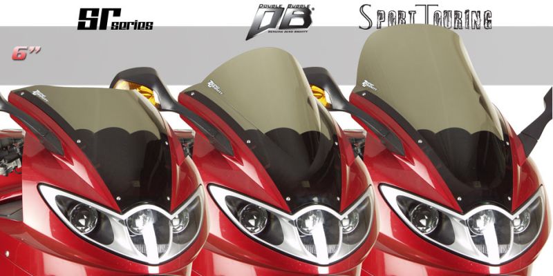タイプ: ダブルバブル(ダブルバブル形状で、伏せた際に防風効果を発揮。また整流効果にも優れ、スポーツ、レース走行向けの段付きスクリーン)