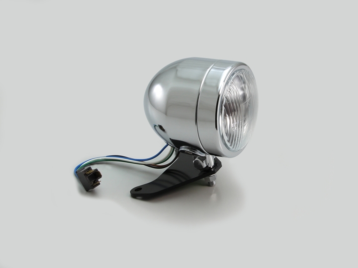 ノーマルの取付け位置を使用してステム三又に付属のヘッドライトステー(ブラック) を取付けます。スチール製クロームメッキでバルブ組込。H4カプラー付でカプラーオンで配線を接続できます。スチール製クロームメッキ仕上げH4 12V60/55Wハロゲンバルブ 取付ステー/H4カプラ付【備考】ライトステーのみ(ハリケーン社品番:HA5680B)、配線処理にはハーネスケース(ハリケーン社品番:HD1302)【ご注意】※ノーマルヘッドライト内の配線を干渉しないように固定する必要があります。