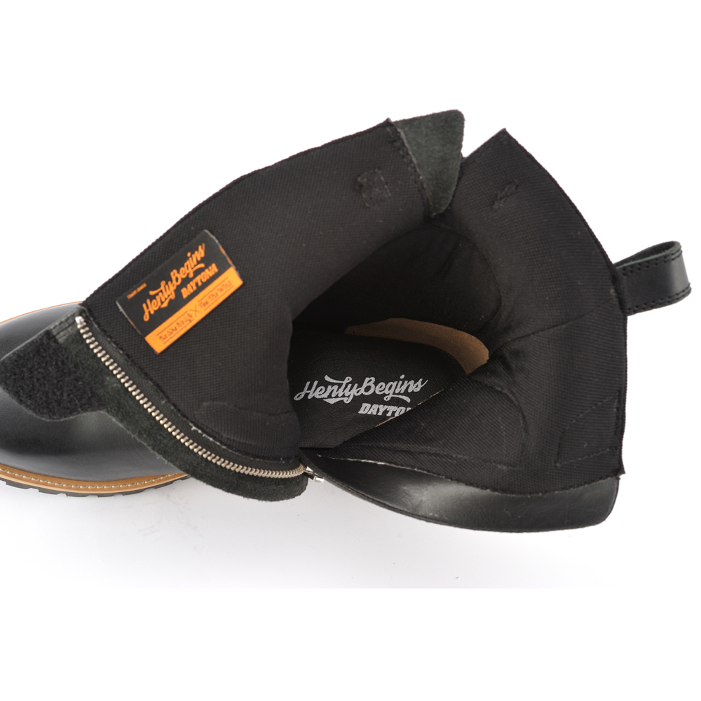 レザーブーツの王道デザイン。ミドル丈のエンジニアタイプ。ソール形状、かかと高、広めのソール幅など、ラスト(木型)からこだわって設計。ライディングはもちろん、歩いたときの使用感も考慮いたしました。素材‥ア ッパー部分:牛革、内装:ポリエステル、ソール部分:合成ラバー仕様‥シフトパッド内蔵、くるぶしパッド、ソールステップ部にすべり止め加工、ファスナーカバー、サイドジップ、裏地付き※防水機能はありません。