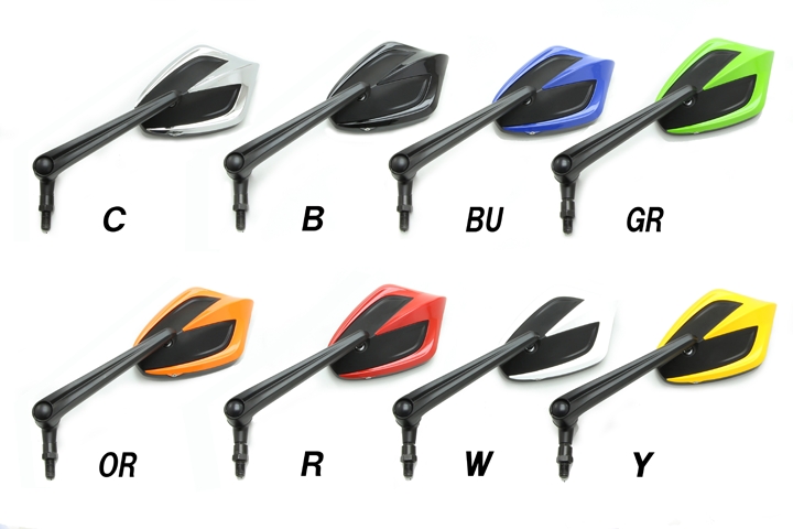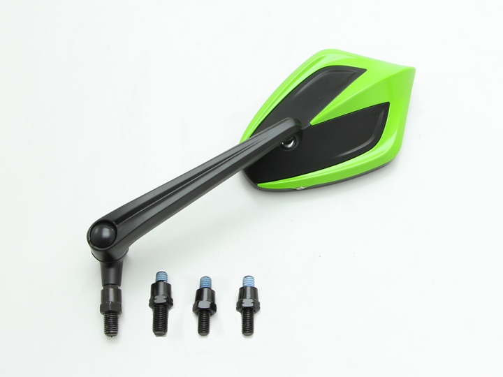 ボディ本体とステーはアルミダイキャスト製 凸面鏡 外寸:89×168mm1個入(左右共通)取付ネジ M8正/逆、M10正/逆 各1個ステー部での角度調整可能07新基準サイズに適合