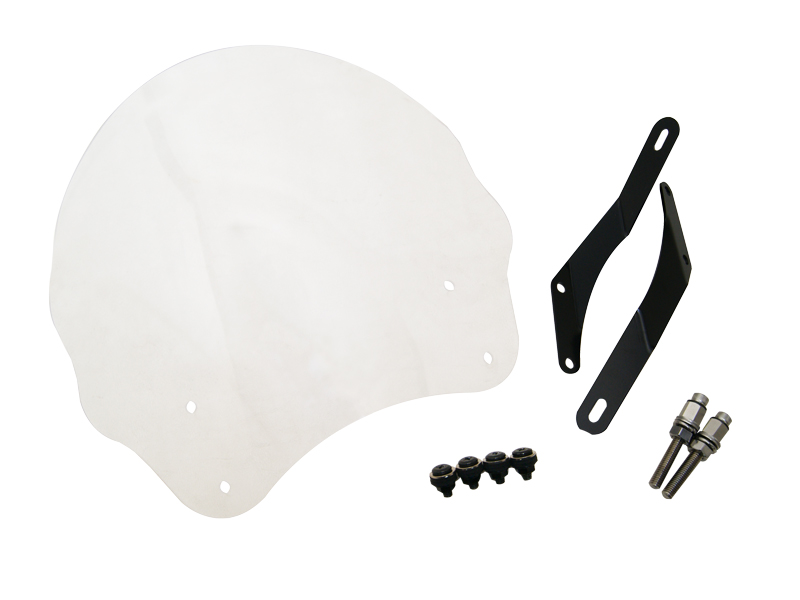 簡単脱着機能を備えたフォークマウントスクリーンに続き、更に機能を盛り込んだスクリーンがオルタナティブスクリーンです。ヘッドライトを左右二点支持で固定しているバイク用に製作しました。フォークマウントスクリーンに比べて脱着が更に簡単になり、取り付けステーのみ残しても目立たないデザインを採用しました。またオルタナティブ【二者択一】という製品名を現すギミックも搭載しました。取り付けステーは本来はビキニカウルDS-01を装着する為に設計したものです。そのためウインドスクリーンだけでなく、ビキニカウルもクイックに脱着を可能としています。ビキニカウル装着用に開発した特殊ボルトは、設計図から起こしてゼロから開発しました。素材には腐食や錆に強いステンレスを採用しています。ショートスクリーン小ぶりなスクリーンですが体の中心部分にあたる風を緩和させます。特に高速道路などでの走行時に効果を体感していただけるでしょう。ミドルスクリーンはショートよりも一回り大きく末広がりな形状になっているため更に広い範囲の風を緩和します。スクリーンステーを固定するボルトは六角穴付きボルトを採用しました。当初見栄えの良いトラス頭小ネジを採用しましたが装着する際にトルクをかけずらかったので六角穴付きボルトを採用しました。素材はステンレスです。スクリーンを装着した場合でも視界に入ってくることはありませんので、夜間走行時の視認性などは気にする必要はありません。お色は取り付ける車体色などイメージに合わせてお選び頂くと良いと思います。