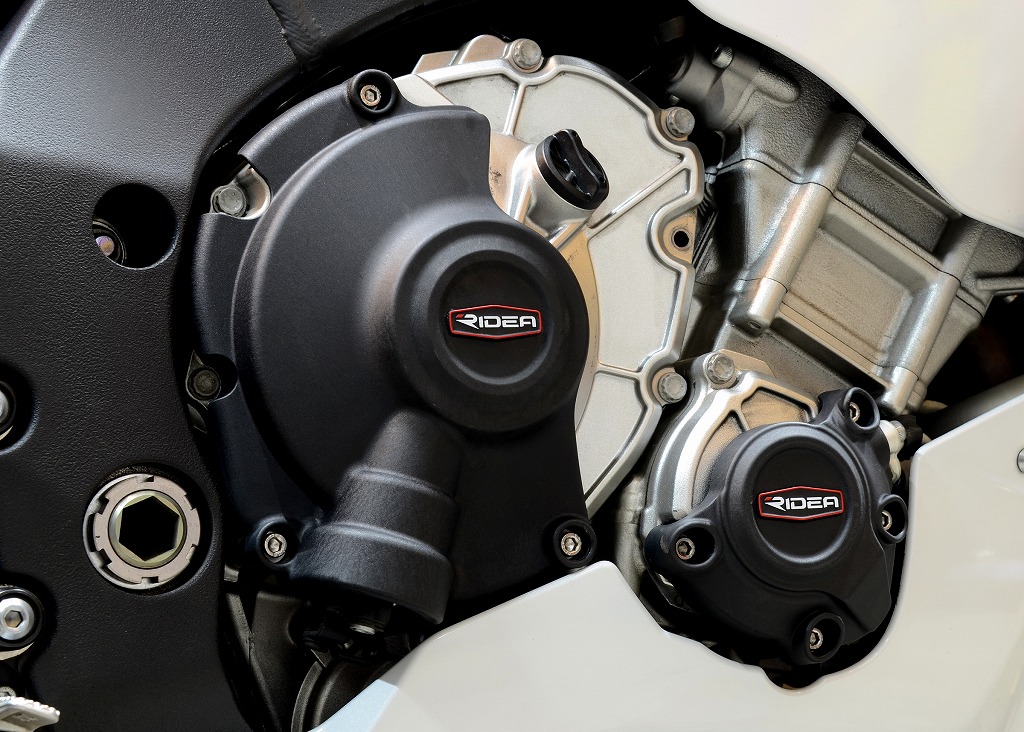 炭素繊維強化エンジンカバー(2次カバー)&フレームスライダー(ホワイト) RIDEA(リデア) YZF-R1/YZF-R1M(15年)