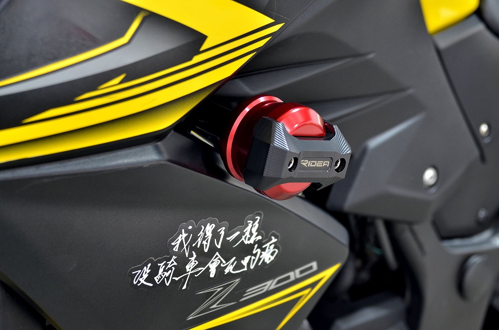 炭素繊維強化エンジンカバー(2次カバー)&フレームスライダー(チタン) RIDEA(リデア) Z250(13〜17年)