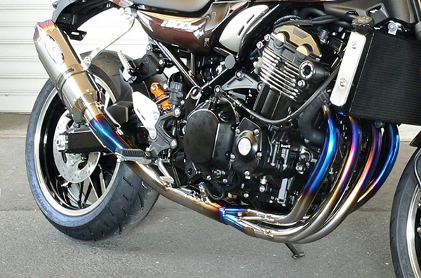 形状に拘り3Dベンダーによる曲線美を最大限に生かした造形のエキパイは、ヒートフィニッシュによる美しい発色の外観と耐汚性を両立し、低回転から高回転までフラットな特性の高性能を実現。※排気熱のかかる部分に、焼け色は発生します。専用タンデムKIT及びサイレンサーステー付属により、アグレッシブなスタイルを表現。※タンデムKITはシルバーとなります。新騒音規制に対応する為、新型サブサイレンサーを採用しながらも4in1スタイルを表現し、ストレート排気パルスコーンシステムにより迫力のサウンドで、加速・近接排気音量規制クリア。 (近接排気音91dB)触媒装置を使用する事により、政府認証適合。適合型式2BL-ZR900Cサイレンサーは、シェル長さ300mm。ノーマル重量11.6kgに比べ、約6.0kgと約48%の軽量化。マフラーを装着したまま、オイル交換、オイルフィルター交換可能。※オプションのセンタースタンドも使用可能。