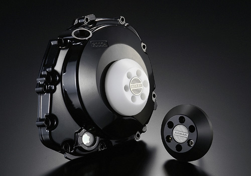 アルミ削り出しベースにφ90のジュラコン(R)を取り付けています。純正のクラッチレリーズアジャストキャップを取り外して装着します。【ご注意】※掲載画像のケースカバーは付属しません。※ジュラコン(R)は、ポリプラスチックス株式会社が日本その他の国で保有する登録商標です。