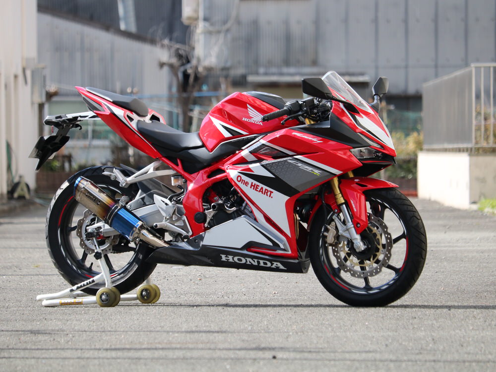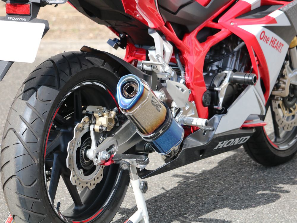 CBR250RRの特性をより活かす様、徹底的にベンチテストで性能解析、ノーマルマフラーを全域においてパワーアップを実現しました。新型サイレンサー「SS-OVAL」の特色でもある中速域〜高速域にかけてのパワーフィールは、理想的なパワーカーブを実現しています。またCBR250RR独特の扱いにくいレブ特性を劇的に改善させ、乗り易く、そして力強い特性へと味付けしました。マフラーレイアウトはガルアームのデザインを活かしてショートダウンにレイアウト。マスの集中化に貢献し、車体特性をも最大限意識したマフラーが「SHORT_LINE」(ショートライン)です。「SS-OVAL」サイレンサー内部は特殊形状のストレート構造を採用。内部構造の剛性を確保する事で高音域のノイズをカット、低音の効いた心地良いサウンドは、高回転域においてはレーシングサウンドの様な雰囲気を醸しつつも安全・安心な政府認証である「JMCA認証マフラー」としてご愛顧頂ける商品に仕上げています。近接/加速騒音値:92/81db触媒装置:内臓モデルオイル交換:OKオイルフィルター:OK