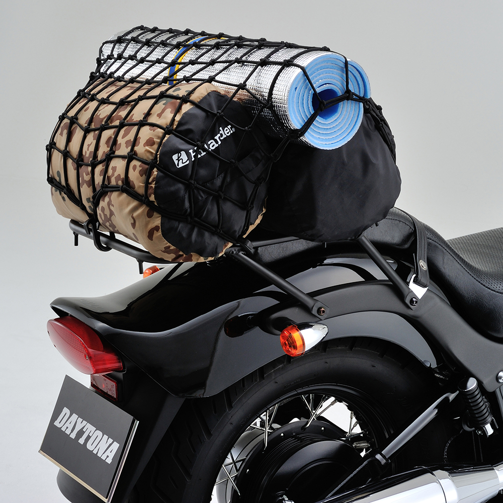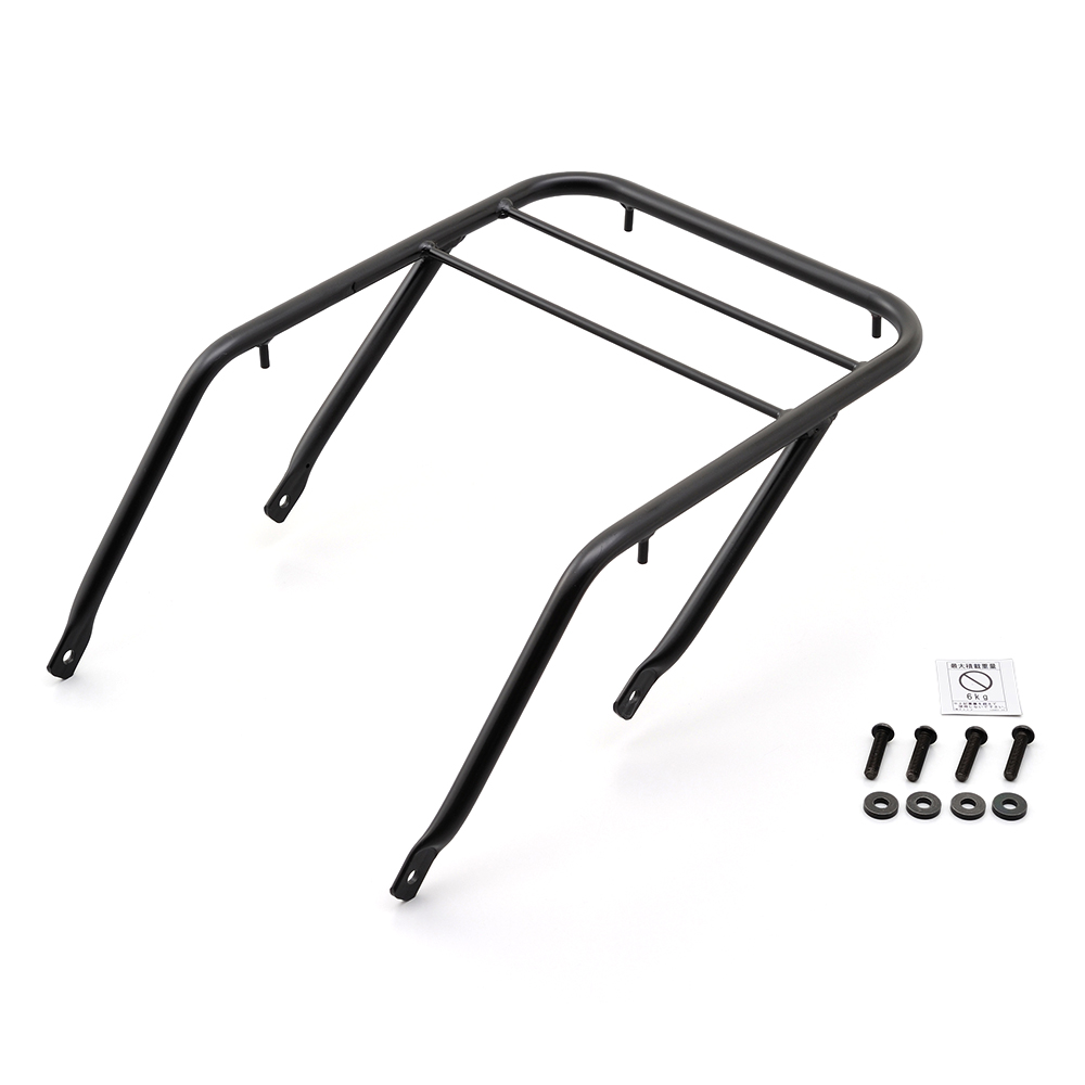 積載時の安定性と実用性を重視したグラブバーキャリア。別売のデイトナ製フラットキャリアと同時装着すれば、フルフラットの広い積載スペースができます。最大積載重量:6kg積載部寸法:縦339×横320(mm)スチール製黒色電着塗装仕上げデイトナ製フラットキャリア、サドルバッグサポートと同時装着可能。荷掛けフック4ケ所付き※デイトナ製サドルバッグサポートと同時装着する場合、ボタンボルトM8×65(4本)が別途必要となります。