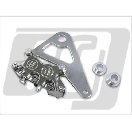 品番:0052-2400-CH PM製 125×4Rキャリパー クロームと品番:HCW-1001 キャリパーブラケットキットのセットです。10インチデイスクローター、3/4インチアクスル用のキットです。取り付けピッチ88,9mmになります。※事故につながる部分ですので、取り付けは必ず専門店にご依頼下さい。