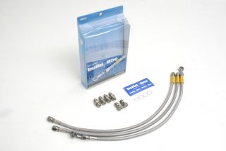 車種別ボルトオンキットには、ブレーキホース本体のほか各車両への装着に必要となるフィッティングパーツやボルト類が含まれます。
