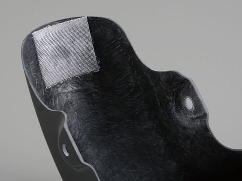 シートに専用液をかけ、補修箇所に貼り付けるだけで簡単に補修できます。