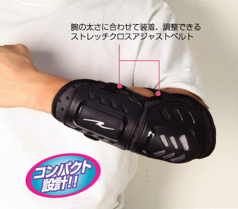 RR10072の強化バージョンのプラスチック製エルボーガードで、プロテクション性も抜群です。コンパクト&スリム設計なので、ジャケットやジャージのインナーに装着可能。