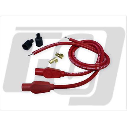 TAYLORプラグコードは多彩なカラーバリエーションと優れた伝導率の高さ・電気抵抗の少なさを追求した高性能プラグコードです。SPIRO-PRO コアはスタンダードなカーボンコアワイヤーの10倍の伝導率を誇ります。プラグコード本体はスパイラルカーボンコアを耐熱200度のシリコンとグラスファイバーでカバーし、さらにカラージャケットをかぶせた8mm径コードとなっています。ドレスアップだけではなく性能の向上も兼ね備えた優れたプラグコードです。インジェクション・フルトラ点火・セミトラ点火・ポイント点火のいずれの点火システムにもご使用いただけます。こちらはコイル側の端子が付属し、コードを車輌に合わせてカットして取り付け出来るユニバーサルタイプです。EVO以前の車輌に取り付け可能です。(※ツインカムにはコイル側の端子が異なるためご使用頂けません。) 適合:12Vコイル変更のパンヘッド&ショベルヘッド&EVOビックツイン24インチの2本セットプラグ側180度/コイル側180度(ご自身でカシメてご使用ください。)