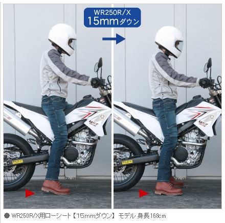 スリム&ローシートで足つき性改善WR250R/X:15mmダウンシート高の高いWR、CRFを扱いやすくするローシート。 シートベースにFRPベースを使用し、軽量化を図りながら強度を確保。 また、シート厚・形状を見直し足着き性も大幅に向上させました。【適合車種】WR250R/X【スペック】15mmダウン
