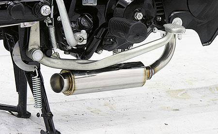 ※型式:JBH-AA01 PGM-FI仕様車専用品です。キャブレター仕様車には適合しませんのでご注意下さい。このサイレンサーの出口は業界初のステンレスの削り出しで、立体感あふれる手の込んだ造りになっています。ここの部分だけでも十分な価値があります!ロッドサイレンサーマフラーより更に低く短くなっております。音量、音質については、低くて重厚感があり、決して音がうるさいとか、耳障りな音ではありませんので、安心して街乗りで使用できます。このマフラーはサイレンサー内部に消音材として一般的なグラスウールを使用せず、内部をいくつかの部屋に分けることによって音を押さえているため、マフラーを破損したりしないかぎり、音量が変わる事はありません。取り付けは、ボルトオンで取り付けするだけですので簡単に装着できます。センタースタンド、キックペダルはそのままで取り付け可能ですが、センタースタンドは使用できなくなります。