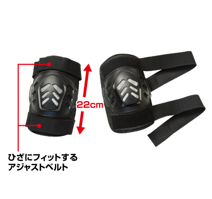 軽量!コンパクトニーガード [ヒザ]バイク乗りの必需品 肝心要のひざをしっかりガードする必須アイテムです。ジーンズや革パンツのインナーにもアウターにも楽々装着。ひざにプラスチックパッドを装備した軽量コンパクトニーガード。MATERIAL: プラスチックパッド、ウレタンパッド、ゴムベルト左右セット