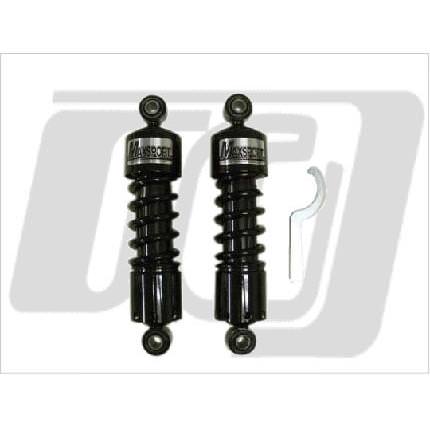 マクスポート サスペンションは車種別専用設計のローダウン用サスペンションです。短い設定ながらも十分なショック機能を備え、足つき性と地を這うようなルックスを実現させてます。5段階プリロード調整機能・専用レンチが付属します。1979-2010年のXLモデル/1982-94年FXRに適合します。(ベルトとベルトガード干渉する場合はガードを外してください。)上下ボルト穴内径約16mm