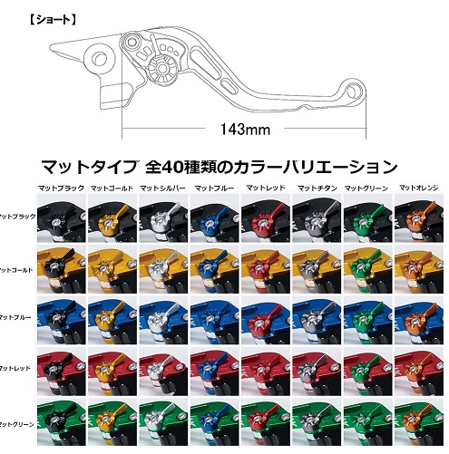 レバー本体カラー:マットレッド(ツヤ無色の落ち着いたカラーリングです。)サイズ:レバー部全長 約143mm 素材:6061アルミ材※アジャスターをマットカラーの8色よりお選びください。U-KANAYAの製品は元GPライダーの金谷秀夫氏と内商会のコラボレーションによる商品です。内商会の管理の下で精密加工しております。U-KANAYAの全商品は、日本国内にて専門のスタッフが製品の組み立て及び検品を行っておりますので、安心してご使用いただけます。【スタンダードタイプレバーの特徴】レバー本体の肉抜きにより軽快なデザインアジャスト機構のツマミデザインの変更による操作性の改善レバーエンド形状の最適化によりバーエンドへの接触を極力おさえる構造【商品説明】高強度・耐食性に優れた6061アルミ合金を使用。粗悪なアルミ材を使用した安価なビレットレバーとの違いは一目瞭然です。精密なフルマシニング加工により高級感のある仕上がりとなっています。純正のレバーと入れ替えるだけで簡単に装着可能です。車種によっては純正の部品を流用します。純正レバーと比べてレバー位置が手前にくるため力を掛けやすい形状になります。手の小さい方や純正レバーを遠くに感じていた方に特にお勧めです。カチッとしたクリック感の良いワンタッチアジャスターによりレバー位置を近くから遠くまで6段階で調整可能。レバー先端部分で約30mmの調整幅があります。レバーの長さは約143mmです。 ※アタッチメント部は含まず。内商会独自の管理システムを導入していますので、万が一のアクシデントによる破損部品の部品供給にも迅速に対応可能です。補修部品も細かく設定されているので、破損部品の供給もスムーズです。純正のクラッチレバーホルダーカバーが付いている車輌の場合、一部加工または取り外しが必要な場合があります。モニターの環境により、画像の色が実物と若干異なって見える場合がございます。画像はイメージです。取付アタッチメントの形状が実物とは異なる場合があります。