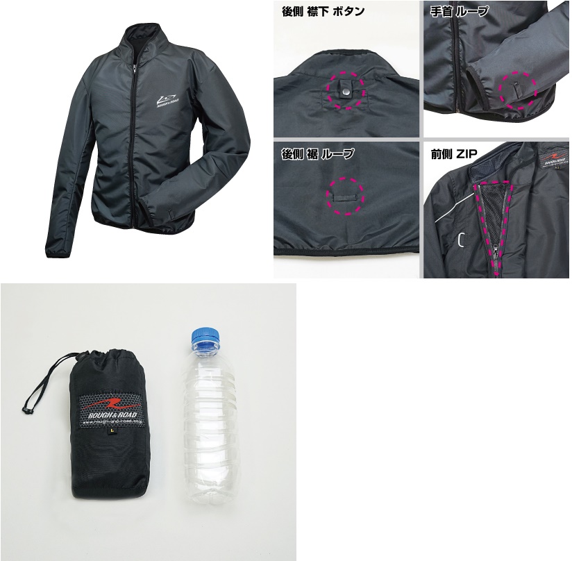 RR7991 コンパクトウインドブレーカーAS ブラック Sサイズ ラフアンドロード(Rough&Road)