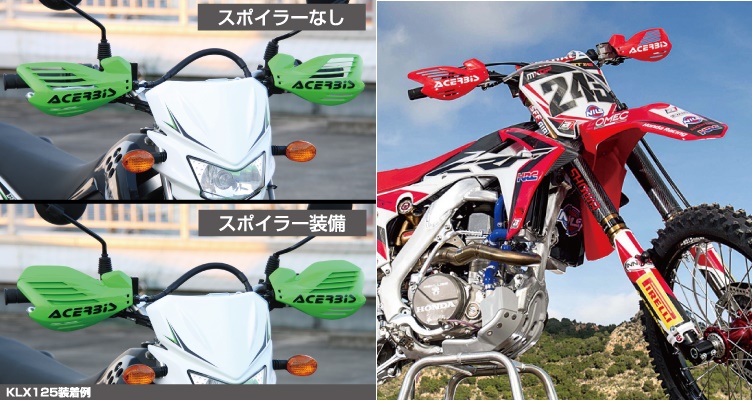 エブリデイエブリタイム春夏秋冬大活躍スポイラー標準装備で用途拡大マウントステーの取り付け自由度向上従来品、既存品を飛躍的に改良。まずはスポイラーを標準装備。夏はOFFで涼しく、冬はONで寒風をシャットアウト。取り付けステーも改良され上回し、下回しが可能になり車両対応度が向上しています。レースシーンから、ツーリングユースまで幅広くカバーしました。付属品: バーマウントKIT対応ハンドル: [外径:22mm 〜 28mm]付属品: マウントキット、スポイラー