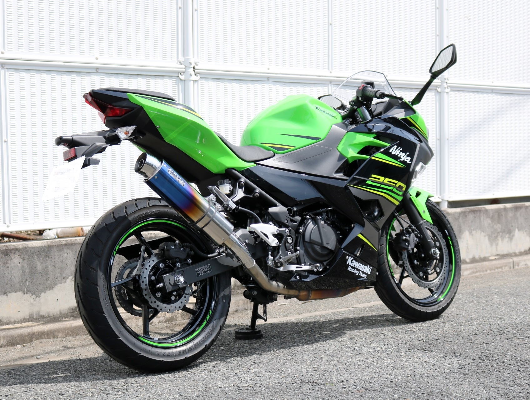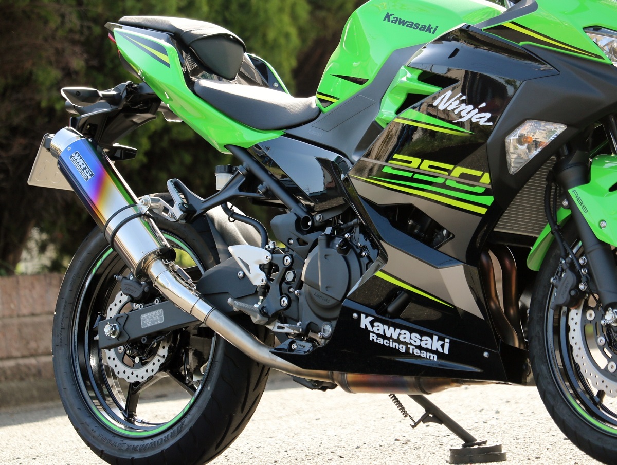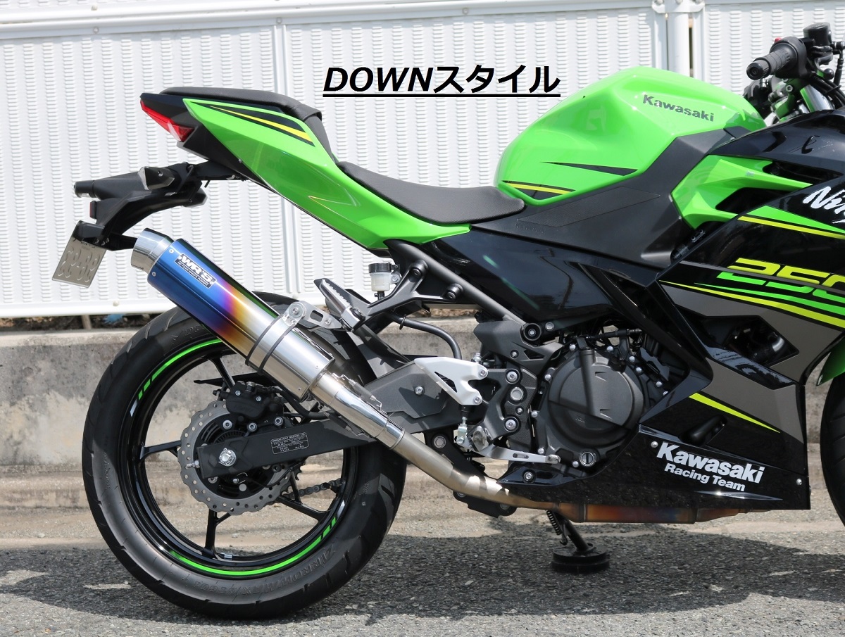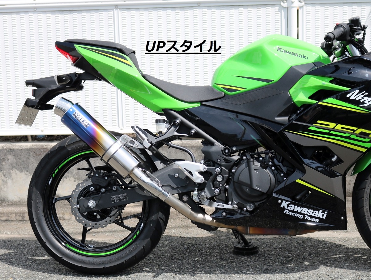 ベンチテストにより徹底的に性能をチェック、2018Ninja400の特性をより活かすべく開発しました。アクセルレスポンスの改善、低中速域のトルク・パワーUPによって回転の繋がりが更にスムーズに。低速域をそのままに中高速域のパワーフィールを大きく改善しました。サイレンサー取り付けには専用のプレートステーを使用。これによりUPタイプ、DOWNタイプと選択が可能となりお好みのスタイルを実現。一体感のあるフルエキゾーストの様なシルエットを演出します。Ninja400の場合、ツインの独特のパルス感をマイルドに味付け。ジェントル感あるサウンドを奏でます。近接騒音値89db加速走行騒音79db付属品:アップ&ダウン兼用ステーオイル交換:OKオイルフィルター:OKJMCA認証・焼き色チタンサイレンサー仕様:1.91kg【マフラー重量】※サイレンサーバンド等の備品を含んだ重量。※この商品はジョイントガスケットを使用しません。(ジョイントガスケット不要)Ninja250/400のノーマルマフラーの連結部のパイプ径は製法的にかなり真円度が高く、あえてジョイントガスケットを使用しなくても良い程の精度です。その事から、ダブルアールズ社はNinja250Rや2013Ninja250のスリップオンにはジョイントガスケットを使用せずにフルエキゾーストと同じ様に直接パイプを差し込む方式を採用しています。