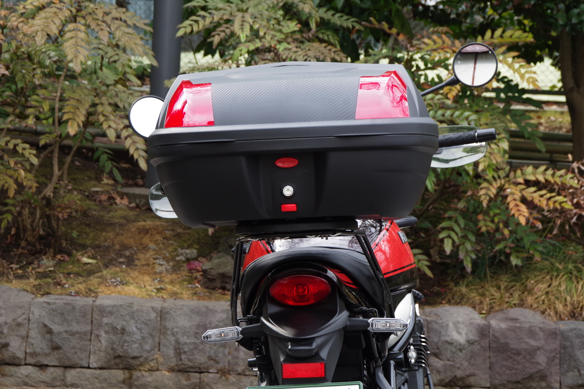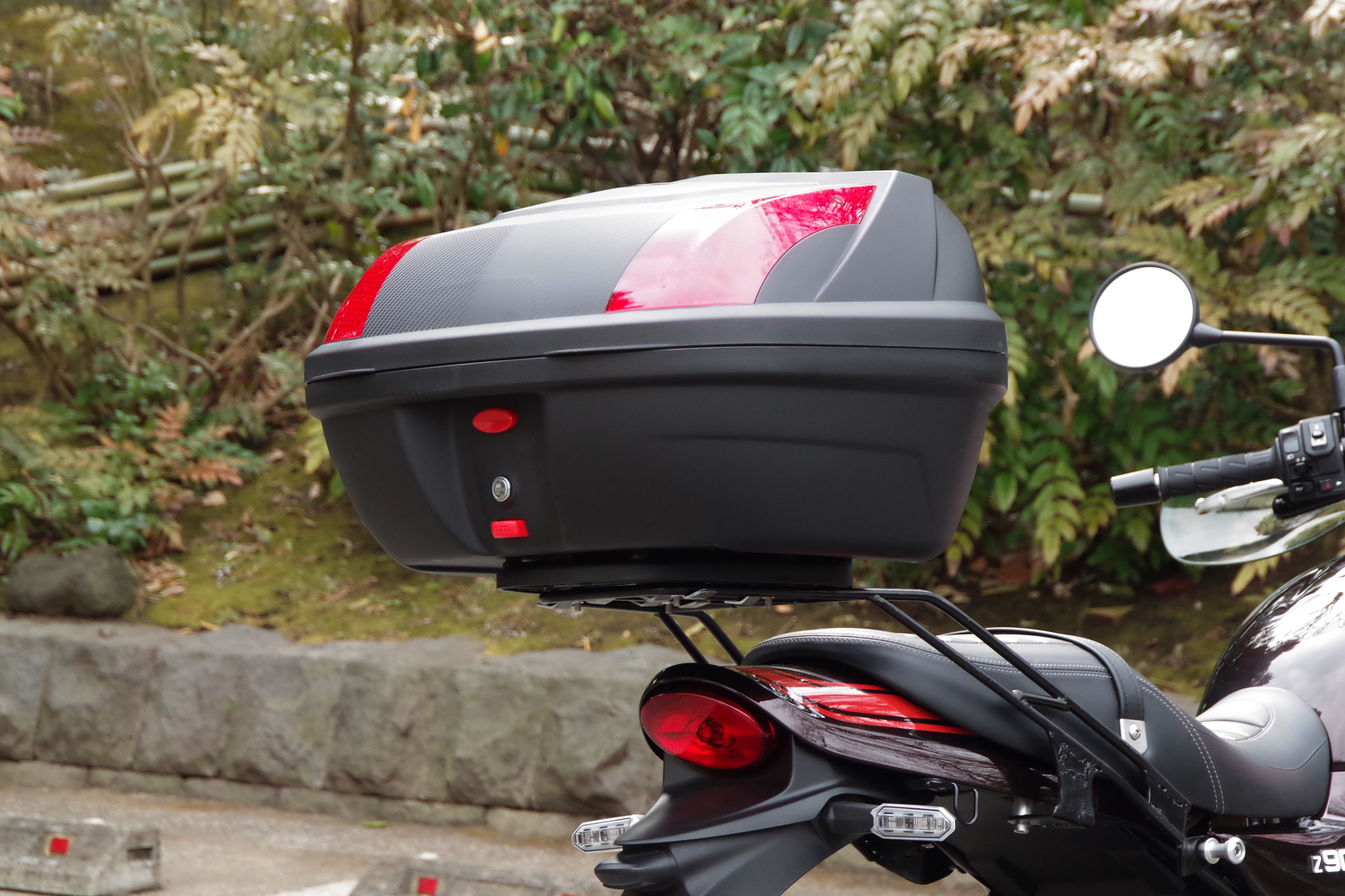 Z900RS Z900RS CAF?用リアキャリア×1×1ツーカラーズレンズリアボックス エクスクルーシブ 48リットル×1 取り付けに必要な台座・ネジ類が付いたフルセット。更にセット販売だけの限定特典 リアボックスインナーを付属します。リアキャリア 最大積載量:5キロリアボックス容量|大きさ:48リットル/縦:33センチ 横:58センチ 奥行き:45センチ