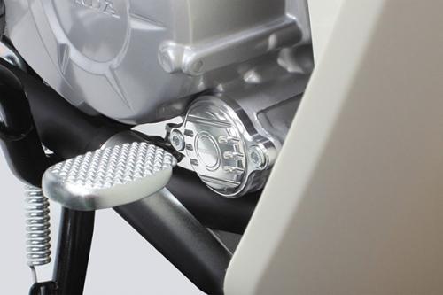 純正カバーと交換するだけの簡単装着で、ドレスアップすることが出来るオイルフィルターカバーです。アルミ削り出しパーツがエンジンを美しく演出します。オイルフィルターカバー本体はアルミ材を精巧に削り出し、表面にシルバーアルマイトを施しています。オイルフィルターカバーの形状はエンジンの冷却フィンをモチーフにしたストレートラインを施し、デザイン性を高めた“フィンタイプ”製品構成:オイルフィルターカバー、ボルト×2個、Oリング×1個