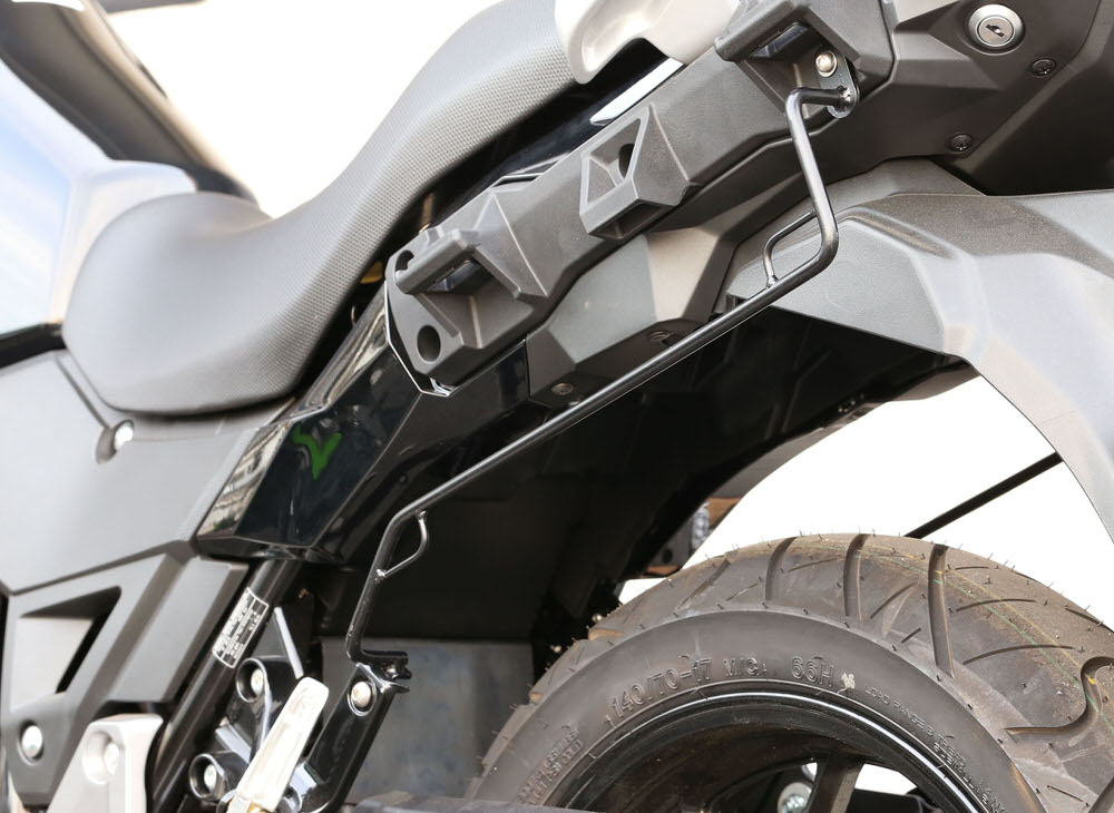 純正サイドパニアではなく、バッグを取り付ける際に活躍するバッグサポートが登場。バッグの巻き込みを防止する安全面と綺麗に取り付けるという実用面を備えたサポートのセット。スチール製 ブラック仕上げ。