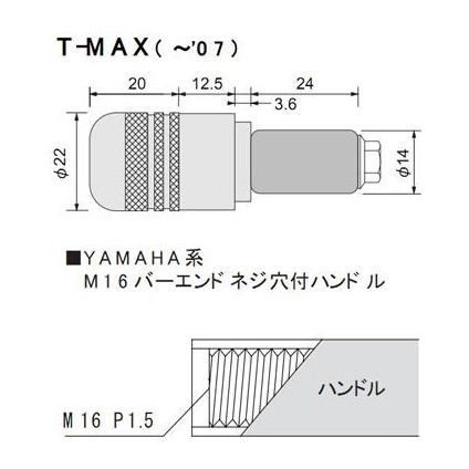 アルミ削り出し外径φ22mmローレットタイプYAMAHA系 M16ネジ穴取付タイプに適合ノーマルハンドル用色落防止UVコート仕上