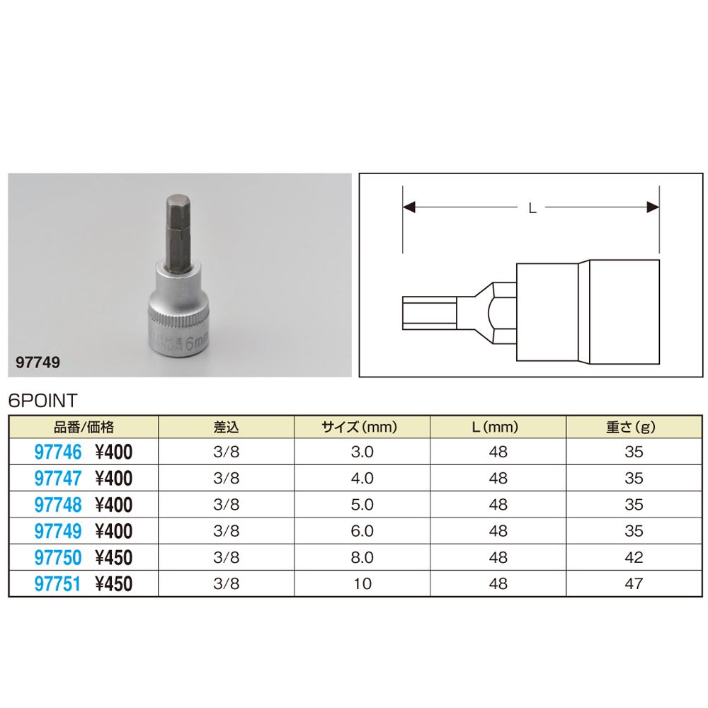 ヘックスソケット(ショート) 10mm 差込3/8インチ DAYTONA(デイトナ)