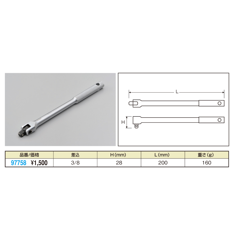 スイベルハンドル200mm 差込3/8インチ DAYTONA(デイトナ)
