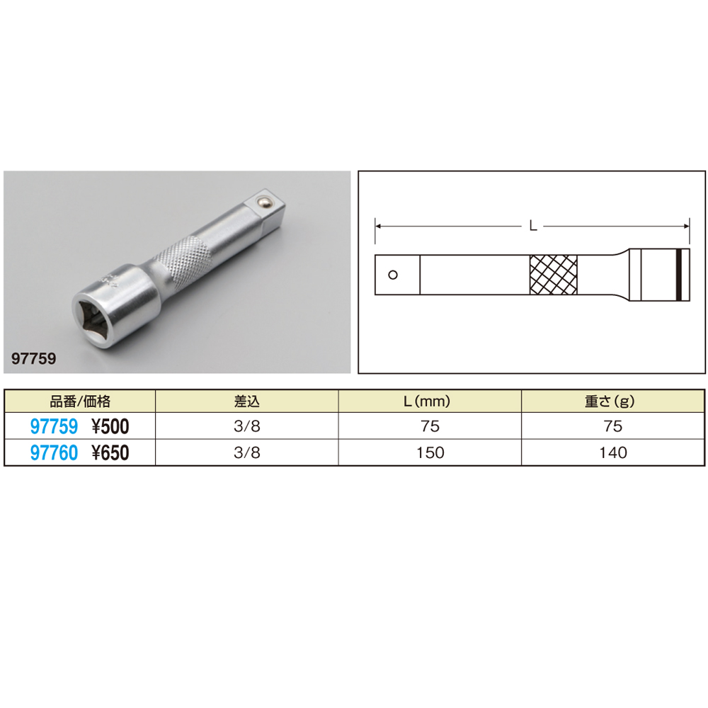 エクステンションバー75mm 差込3/8インチ DAYTONA(デイトナ)