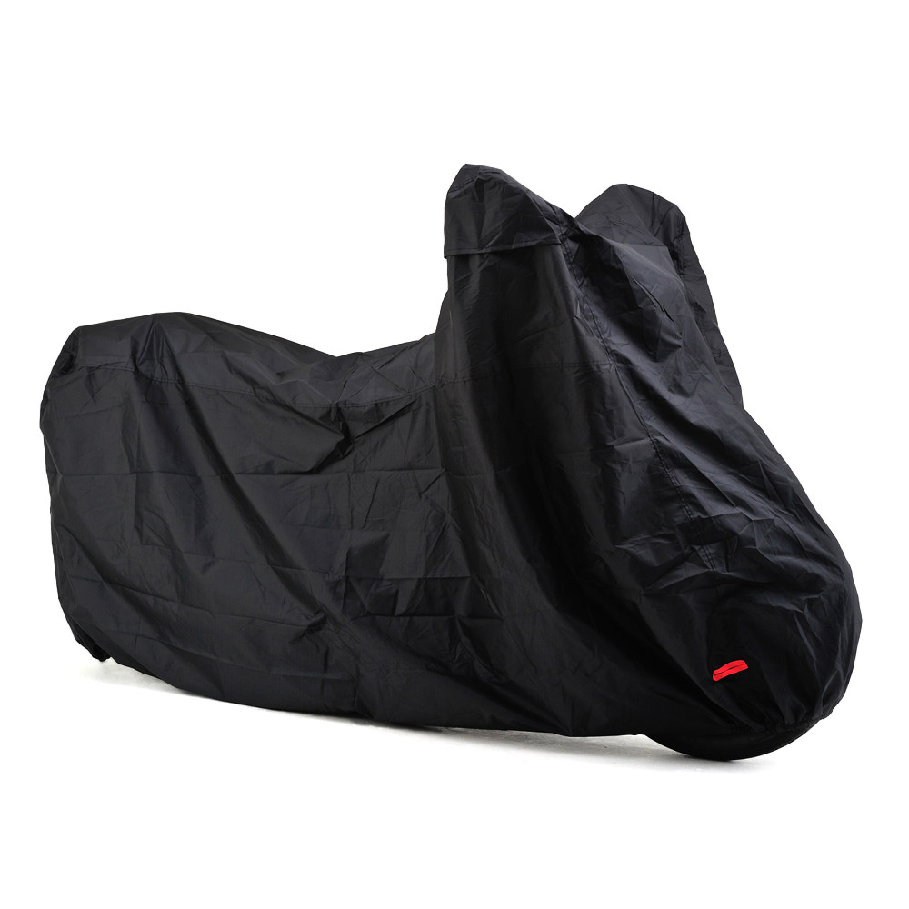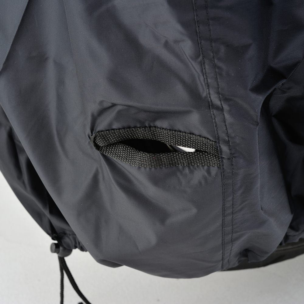 ・エアベント機構:左右ミラー部のエアベント機構が、湿気を排出します。・前後判別:チェーンホールのフロント側を赤、リア側を黒に分けて前後の判別ができます。・後縛りひも:後部から裾を絞ることで、裾のめくれを防止します。・溶けない耐熱パッド:耐熱性コットンパッド付属。マフラーなど高温部に貼り付けることで、バイクカバーが溶けることを防ぎます。・風飛び防止センターベルト:車体横で固定できるので、地面に膝をついてベルトを装着する必要がありません。・大型ロック対応:前後に大型ロックに対応したチェーンホール(幅85mm)装備。カバーをめくってロックする必要がありません。カラー:ブラックサイズ:LL※生地表面にはっ水性のコーティングを施してありますが、完全防水ではありません。雨量・使用状況によっては浸み込む場合があります。また、特性上経年劣化によって防水性が著しく落ちます。あらかじめご了承ください。※耐熱パッドを貼り付けた部分でも、高速走行・高回転を多用するハードな走行直後は、マフラーが300℃以上の高温となり、表面まで熱が伝わる恐れがありますので、少し冷ましてからカバーを掛けてください。※車種適合表に記載されているサイズは、車両に対してタイトなサイズを表示しています。ゆったりカバーを被せたい場合は、1つ大きいサイズをおすすめします。【適合参考車種】CB1300SF/SB、CB1100、CBR1100XX、VTR1000F/SPCBR929/954RR、CBR900RR、CBR600RR、CB500/750NC700/750、RVF、VRXロードスター、400XXJR1200/1300、YZF-R1/R6、FZS1000S、MT-10YZF750/1000、MT-09、XJ900S、XSR700/900、FZR750、FZX750MT-07、FZ6-N/S、MT-03/25、YZF-R3/R25、マジェスティSNMAX、GSX1400、B-KING、GSX1300Rハヤブサ、バンディット1250SGS1200S、GSF750/1200、GSX750S/1100SGSX-R750/1100、RF400F/900F、GSR600、V-strom250バーグマン200、ZX-6R/9R/10R/12R/14R、Z1000、Z2、W400、Z750SBMW F800R、BMW F800S/ST、aprilia TUONO、aprilia SHIVER750GT