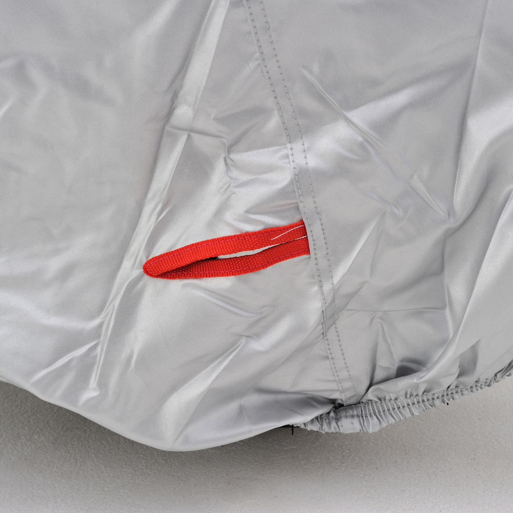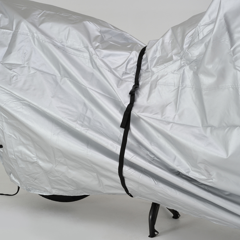 ・エアベント機構:左右ミラー部のエアベント機構が、湿気を排出します。・前後判別:チェーンホールのフロント側を赤、リア側を黒に分けて前後の判別ができます。・後縛りひも:後部から裾を絞ることで、裾のめくれを防止します。・溶けない耐熱パッド:耐熱性コットンパッド付属。マフラーなど高温部に貼り付けることで、バイクカバーが溶けることを防ぎます。・風飛び防止センターベルト:車体横で固定できるので、地面に膝をついてベルトを装着する必要がありません。・大型ロック対応:前後に大型ロックに対応したチェーンホール(幅85mm)装備。カバーをめくってロックする必要がありません。カラー:シルバーサイズ:L※生地表面にはっ水性のコーティングを施してありますが、完全防水ではありません。雨量・使用状況によっては浸み込む場合があります。また、特性上経年劣化によって防水性が著しく落ちます。あらかじめご了承ください。※耐熱パッドを貼り付けた部分でも、高速走行・高回転を多用するハードな走行直後は、マフラーが300℃以上の高温となり、表面まで熱が伝わる恐れがありますので、少し冷ましてからカバーを掛けてください。※車種適合表に記載されているサイズは、車両に対してタイトなサイズを表示しています。ゆったりカバーを被せたい場合は、1つ大きいサイズをおすすめします。【適合参考車種】ホーネット250/600/900、CB400FOUR、CB400SF/SB、CB400SSVRX400ロードスター、CD250、GB250クラブマン、NSR250RPS250、VTR250、ジェイド、CB223、PCX125/150CT110 ハンターカブ、CC110 クロスカブ、NS-1MT-09/07、SRX250/400/600、XJ6N、SR400/500FZ400/400R、XJR400/R、FZR250R、R1Z、RZ250/350SRV250、TDR125/250、TZR250、YD125/250、ルネッサトリシティ125、ギア、SV400/650、GSR400、GSXR400RGSX400F/S、GSX400S、GSX400インパルスグラディウス400、バンディット250/400、GSR250/FST250、ウルフ125/200/250、ボルティー、ジクサーNinja400/R、ZRX400/2、ZXR400/R、ZZR400、Z400FXゼファー400/χ、ESTRELLA、Ninja250/R、GPZ250R、250TRD-トラッカー125、KLX125、aprilia MANA850aprilia スカラベオ250/400ie、aprilia RS125、aprilia スカラベオ125KTM Super Duke