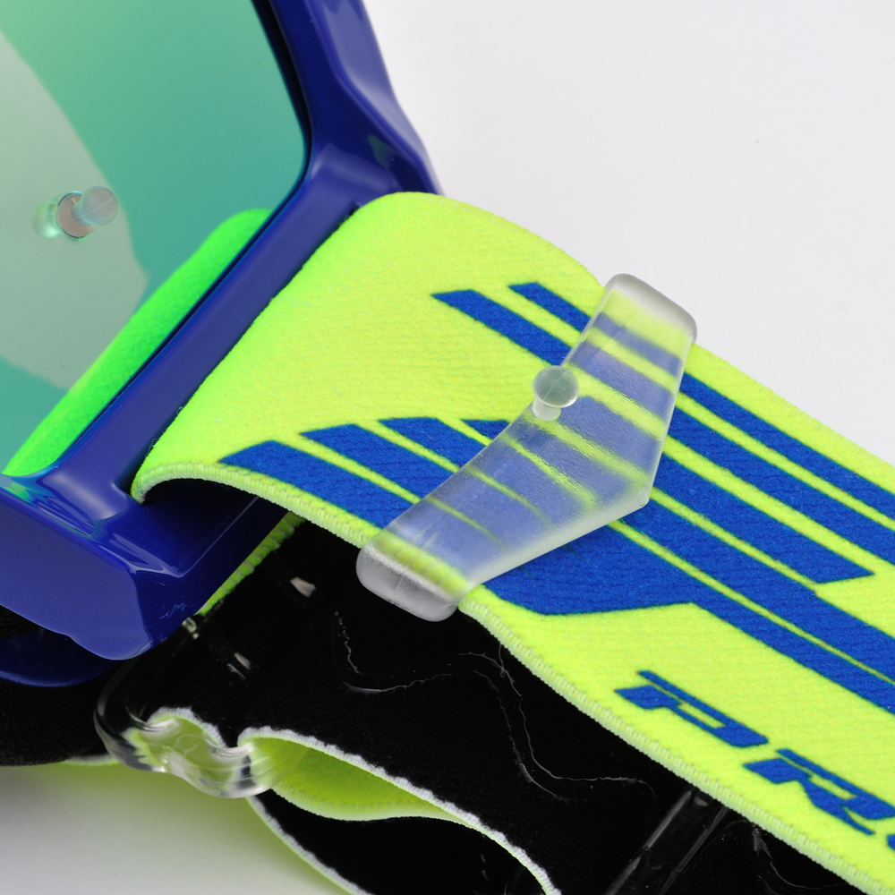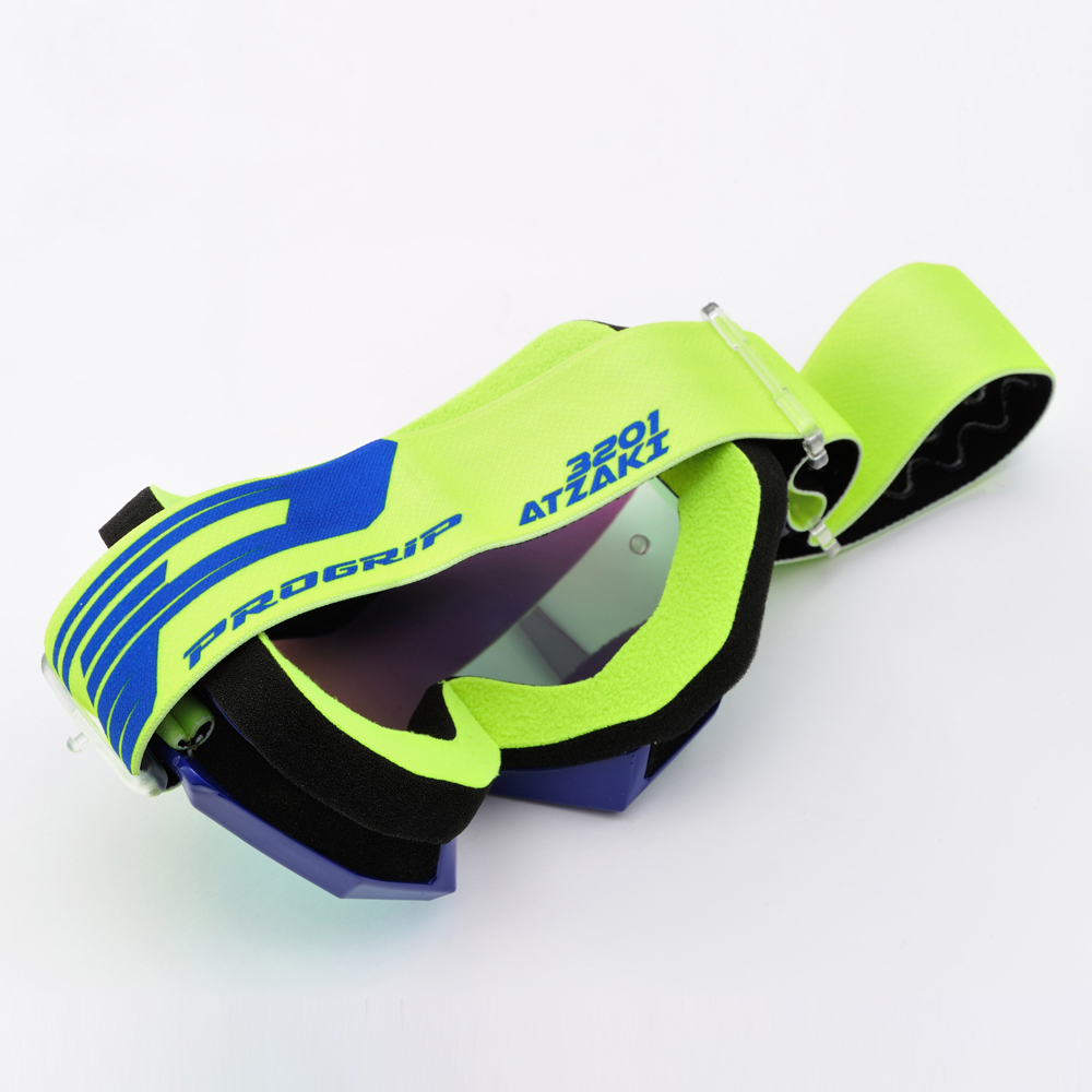 PROGRIP 3201レースラインゴーグルをベースに、光沢のあるフレームにアップグレード。ミラーレンズ。ティアオフ対応。アンチスクラッチ(傷付防止加工)。