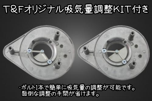 製品の仕様・エアクリーナー部分:アルミ製メッキ仕上げ。・ステー部分:FRP製。製品の特徴・完全ボルトオン。・ガレージT&Fオリジナル吸気量調整KIT付き。ボルト1本で吸気量の調整が可能です。・小振りなエアクリーナーになりますので、エンジンを強調する事が出来ます。注意事項・エアクリーナーダクトはFRP製の為、製造工程上、表面処理の際に接合面やフチ部分は色ムラが出来てしまいます。気になる方は塗装などをされてから取り付けを行って下さい。 マグナ250 ティアドロップエアクリーナーKITガレージT&Fオリジナル吸気量調整KIT付きボルト1本で簡単に吸気量の調整が可能です。面倒な調整の手間が省けます。