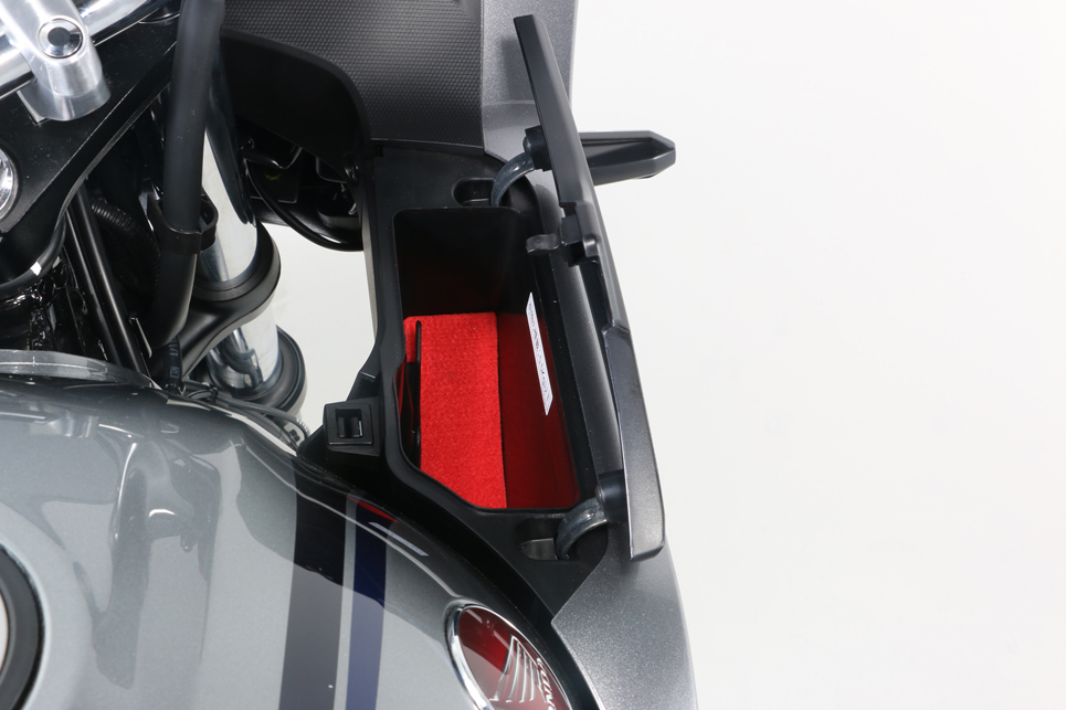 フロントカウルの左右にあるカウルボックスの型にあわせて底に敷くだけ。前後滑りの抑制、走行中の振動を和らげ、壊れやすいものを守ってくれます。●発砲ポリエチレン製●厚み:約3mm●左右カウルボックス用