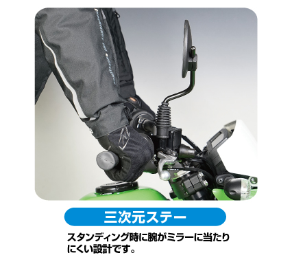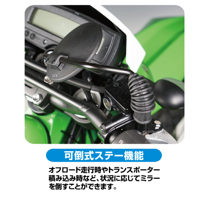 リプレイスミラーのメジャーブランド機能満載、RALLY690ミラー可倒ステー・フルアジャスト機能・三次元ステーと機能満載。転倒時のダメージを研究し尽くしたミラーです。RALLY独自のユニバーサル機能によりミラーの細かな位置調節が可能。ライダー・車体にあったミラー位置を見出せるため、後方視認性もUP!