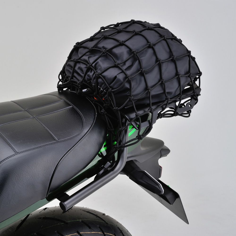 デザインされたアルミトッププレートと車種専用取付フィッティングで荷物を積載していない状態でも違和感のない車体フォルムを実現。キャリア装着状態でシートの脱着が可能。トッププレート:アルミA5052材、板厚5mm、黒塗装仕上げ フィッティング:スチール製電着黒塗装仕上げ 最大積載量3kg※キャリア負荷が大きいためGIVI社汎用ベースの取付不可。