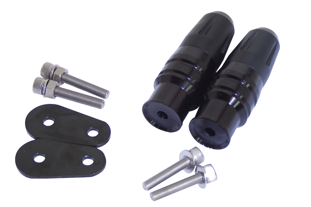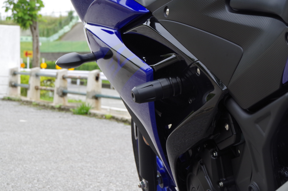 本体:アルミ アルマイト仕上げ 340gエンジンマウント部分に装着する方法も考えましたが、この方法だとカウルに穴あけが必要になってしまいます。折角転ばぬ先の杖でガードを装着しても取り付けの際にカウルを加工するのでは本末転倒と考え、この装着方法は見送りました。ガードはカウルをかわして装着する方法にしました。カウルをかわす為のプレートは4.5mmのスチール(鋼材)を採用しました。もしも強い衝撃が加わるような転倒をしてしまった場合にボルトをマウントしているエンジンケースがダメージを受けないようにプレートが破損してダメージを受け流す設計です。※あらゆる転倒からケースを守れるわけではありません。倒れ方によっては装着していない時の方がダメージが小さくなる可能性はございます。