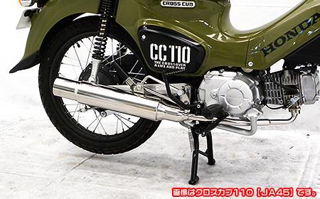 シンプルな形状でありながら、存在感溢れるスタイルのシャープタイプサイレンサーを採用しました。チョッパースタイル、アメリカンスタイル、カフェレーサースタイルに合うマフラーです。サイレンサーは細すぎず太すぎずの90mm径を採用しています。このマフラーの1番の売りは「音」です。音量、音質は抜群です。低くて重厚感のある重低音がドッドッドっと響く、抜群のサウンドです。決して音がうるさいとか、耳障りな音ではありませんので、安心して街乗りで使用できます。バッフル(消音用のパーツ)を標準装備しておりますので、簡単な作業で2種類の音量が選択できます。性能面では排圧コントロールによって低速から高速までスムーズな走行を実現しています。取り付けはノーマルと同じ様に無加工ボルトオンで簡単に装着できます。耐久性、耐腐食性の高いSUS304ステンレス製。バッフル(消音用のパーツ)を標準装備。 2種類の音量が選択可能。バッフル装着時-排気音量 約 88db(法定音量規制内)バッフル非装着時-排気音量 約 90db※画像の車両はクロスカブ110(JA45)です。実際の商品はJA44/JA42用となります。