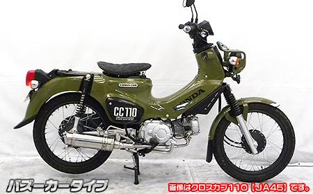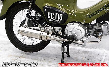 落ち着きのあるハイクオリティーデザインでシンプルに仕上がっています。性能面では排圧によるコントロールで低速から高速までスムーズな走行を実現しています。消音材には、上質のグラスウールとスチールウールを使用していますので、音は、静音で重低音サウンドを醸し出します。心地よい低音を堪能できます。バッフル(消音用のパーツ)を標準装備しておりますので、簡単な作業で2種類の音量が選択できます。取り付けはサイレンサーバンドを使用してしっかり2点止めで固定きます。ボルトオンで簡単に装着できます。センタースタンドはそのままで取り付けでき使用も可能です。耐久性、耐腐食性の高いSUS304ステンレス製です。サイレンサー出口は バズーカータイプです。バッフル(消音用のパーツ)を標準装備。 2種類の音量が選択可能。バッフル装着時-排気音量 約 87db(法定音量規制内)バッフル非装着時-排気音量 約 89db※画像の車両はクロスカブ110(JA45)です。実際の商品はJA44/JA42用となります。