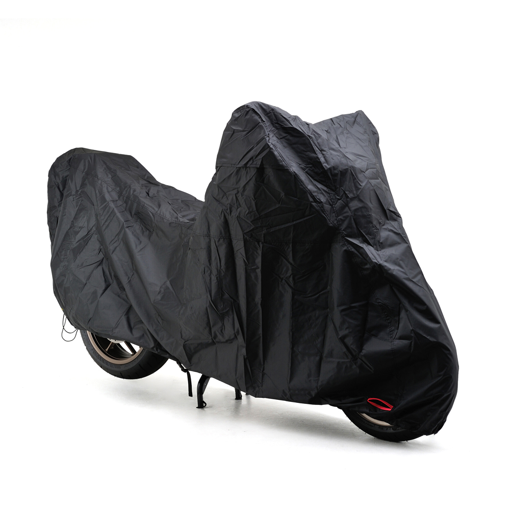 ・黒い繊維だからこそ実現できた、雨に打ち勝つ高耐久・耐水性の特殊素材生地を新たに開発。脅威の耐水圧20,000mmの生地を使用した雨に強いバイクカバー。オリジナル裁断パターンと、縫い目のシーム処理で水の浸入を抑止。・通気性を良好にするエアベント機構。左右のミラー部からこもった湿気を排出。・フロント側のロックホールスリットを赤色、リア側のロックホールスリットを黄色に分けて前後の判別ができる。・マフラー接触位置に耐熱インナーを採用することで、エンジンやマフラーの熱でカバーが溶けてしまうことを防止。・車体中央下部のワンタッチベルトと後部のひも締めでカバーが風で飛んでいく心配がない。ベルトは左右どちらからも取り外し可能。絞りひもは面ファスナーで固定可能。・専用収納袋付属。袋は大きめなサイズだから、ラフにバイクカバーをたたんでも収納できます。湿ったカバーでも水はけのするメッシュ仕様。CB1300SF/SB、 CB500/750、 VTR1000F/SP、 CBR1100RR、 CBR900RR、 CBR600RR/1000RR、 RVF、CBR929/954RR、 CB1100/EX、 NC750X/S、 フォルツァ/Si XJR1200/1300、 YZF-R1/R6、 MT01/03、MT-25、 MT-09、 FZ-1/8、 FZ1 FAZER、 XJ900S、 FZ6-N/S、 FZX750、 FZR750、 FZS1000S、YZF750/1000 GSX750S/1100S、 GSX1400、 GSX1300Rハヤブサ、 GSR600、 バンディット1250S、GSF750/1200、 GSX-R750/1100、 GS1200S、 B-KING、 RF400F/900F ZX-6R/9R/10R/12R/14R、W400/650/800、 Z2、 Z750S、 Z1000、 ゼファー750/750RS、 ゼファー1100/1100RS、ZZR1100/1200/1400、 ZRX1100/1200/DAEG、 GPZ900R BMW F800S/ST、 BMW F800R、APRILIA TUONO、 APRILIA MANA850※完全防水ではありません。※カバーを被せるときは、エンジンやマフラーなどの熱が十分に冷めていることを確認した上で被せてください。※直射日光や風雨、砂埃等から車両を保護することによりバイクカバーは必ず経年変化が発生します。使用状況により異なりますが、色あせする場合があります。