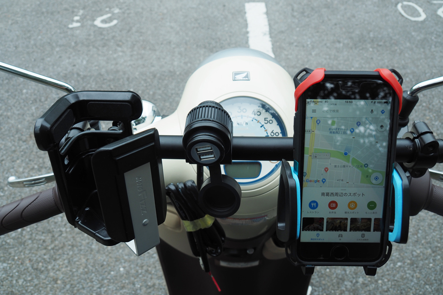 バー本体:スチールカチオン塗装仕上げクランプ:アルミウレタン塗装仕上げキャップ:ABSボルト類:スチール・ステンレスパイプ長350mm ガジェットマウント範囲 310mm【スマホやUSBチャージャー、ナビなど複数のガジェットをマウントするバーを作りました】ワールドウォークは視認性の良い場所にスマートフォンをマウントする為のバーをリリースしています。大変ご好評頂いていますが、イベントなどでお客様のバイクを拝見すると複数のガジェット(便利な小物)をハンドル周りにマウントしているのを見かけることが増えてきました。しかし近年テーパーハンドルを採用している車両も増えてきておりハンドル径が一定ではないのでガジェットの装着が難しく、スクーターなどはクランプするハンドルが露出していない車種が多いのでハンドルマウントのガジェットが装着できません。。またハンドルの形状も真っ直ぐではないので取り付けに苦労する事もあります。そこでワールドウォークが開発したのが複数のガジェットをマウントする事を目的に開発したバー。マルチガジェットマウントバーです。【複数がジェットをマウントするのに最適な剛性、設計を取り入れています】スマートフォンやドリンクホルダー、USBチャージャーやナビゲーションシステムなどハンドル周りにマウントして使うガジェットは増えており、快適にバイクに乗るために複数のガジェットをマウントして使用しているユーザーが増加傾向にあるのは前述したとおりです。マルチガジェットマウントバーは車種によって取り付け方法が若干異なりますが複数のガジェットをマウントしても問題ない強度を確保しバー本体は国産ハンドルと同じ22.2φを採用。バイク用のガジェットであれば殆どの製品をマウントする事が可能です。車体との干渉などを避けるために車種によってバーの長さは異なりますが3〜5個程度のガジェットをマウントする事を想定しています。【メーターの視認性には充分配慮して設計しています】メーターにはスピードやガソリン残量、オドメーターなど大事なインフォメーションが表示されます。そのためガジェットを装着した際にメーターの視認性が悪くなってしまうのは避けたいところです。ガジェットを装着する位置は工夫しなければなりませんが、可能な限りメーターの視認性が悪くならない位置にバーがくるように調整しました。【ハンドルをフルにきってもガジェットがあたりにくい設計です】ハンドルをフルできった時にスイッチボックスとガソリンタンクのクリアランスが狭いバイクは多々あります。そのためハンドルバーに直接ガジェットをマウントすると干渉してしまうリスクがあります。マルチガジェットバーはハンドルバーよりガジェットをマウントするバーが高い位置になるようしているので干渉しずらい設計です。【バー部分はスチール材を採用しカチオン塗装仕上げです】ガジェットの脱着を繰り返す事を前提に設計したのでバー本体部分は硬く摺れに強いスチールを採用しカチオン塗装で仕上げています。密着性に優れた厚い塗膜を形成することができるため、防錆、防食効果の高い塗装です。【クランプ部分はアルミの塗装仕上げです】バーをクランプする部分は軽量で腐食に強いアルミを採用し塗装で仕上げています。バーエンド部分にはプラスチック製のキャップを採用。雨天時に水などが入るのを防ぎます。全ての素材を同じにするのではなく、場所によって最適な素材を選択しています。