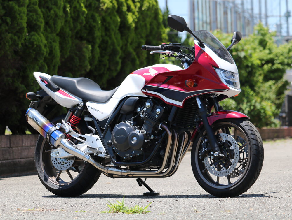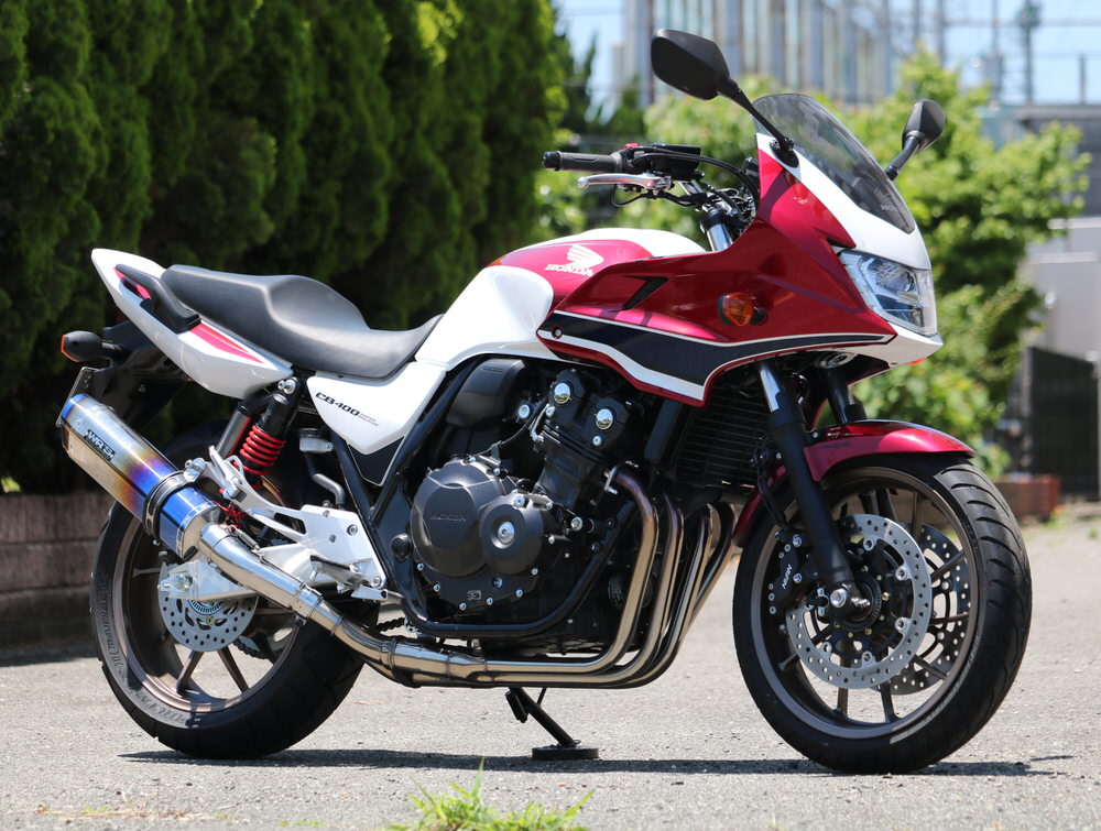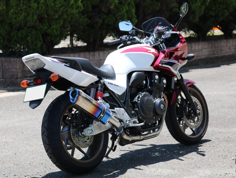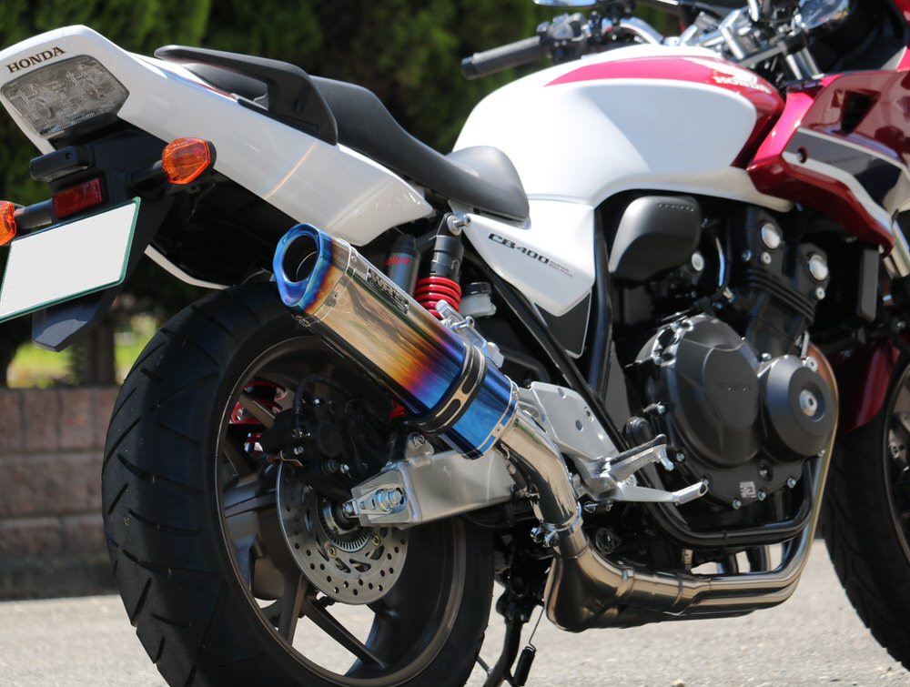 ベンチテストにより徹底的に性能をチェック、CB400SF・SBの特性をより活かすべく開発しました。アクセルレスポンスの改善、低中速域〜高速域までトルク・パワーUPで全域をアップデートしました。センターパイプにはφ60.5大口径センターパイプを採用、排ガス浄化性能を高めつつ最適なパワーフィールを実現。サイレンサーはハイエンドモデルのSS-OVALを採用。拘りの質感を体感して下さい。サイレンサーエンドはバッフルレス仕様とし、圧倒的な雰囲気を醸しながらも音質はジェントルな音質に仕上げました。重低音を効かせた音質ながら心地良い直4サウンドを堪能して頂けます。※ スリップオンマフラー取り付けに必要なジョイントガスケットを付属しております。近接/加速騒音値:91/76OF/Dボルト:OK政府認証:JMCA認証SS-OVALサイレンサー仕様 マフラー重量:2.17kg(※サイレンサーバンド等の備品を含んだ重量。)
