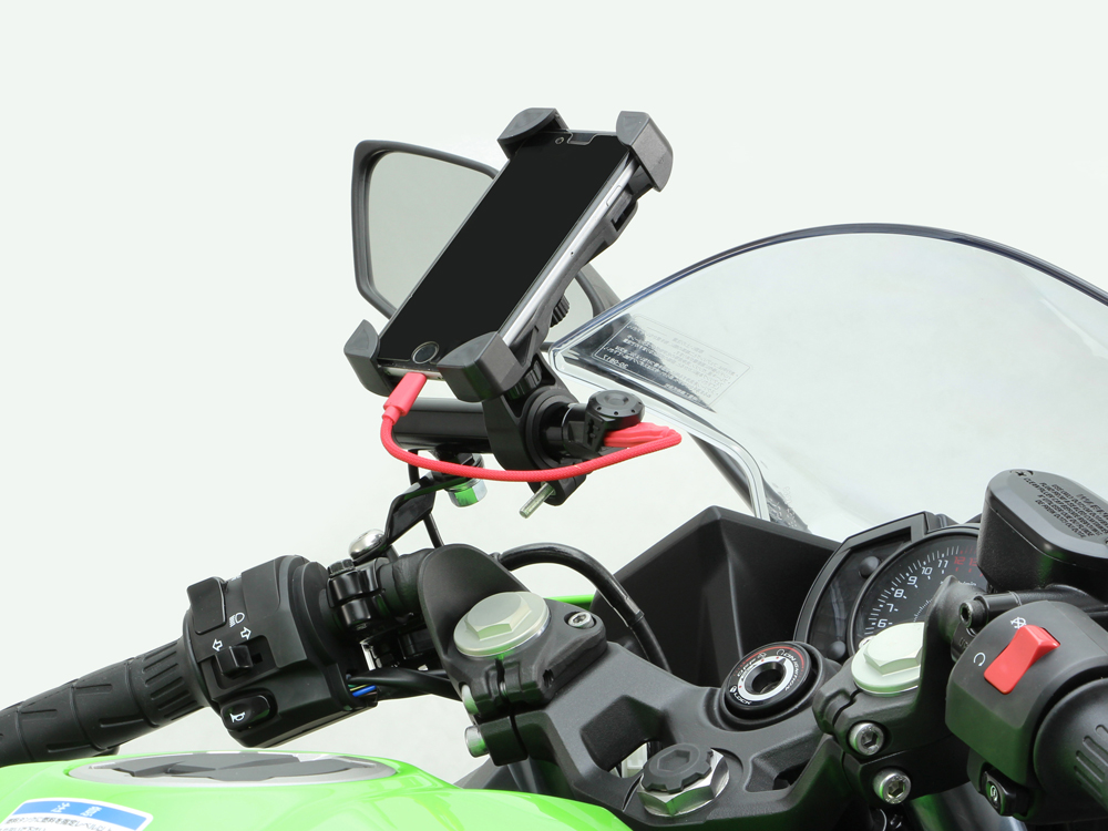 左右ミラーボルト等に取付ステー穴φ10mmバー外径φ22.2mm クランプ有効長68mmバークランプ式のスマホ&ドリンクホルダー等の取付に便利15°角度付ステー 広い調整範囲、防水&省電力設計 5V2.1A出力オフセットステーの上下を付け替えれば向きを変更できます。また、バー部分は回転するので、広範囲な取付・調整が可能です。