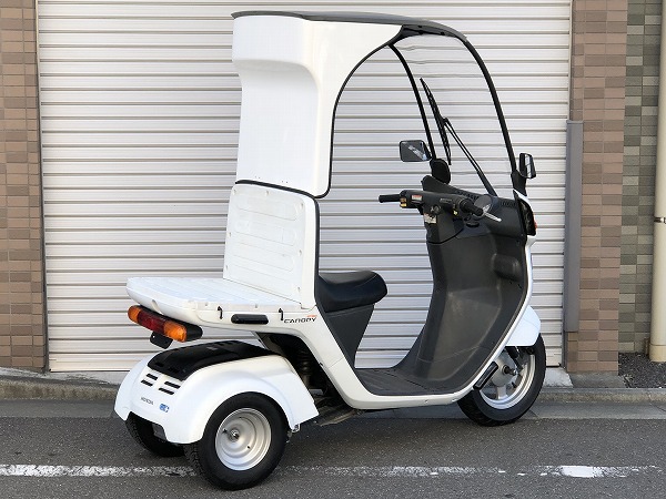 ビジネスや日常の足として、最近ではカスタムベースとしても人気のジャイロキャノピーですが、後ろからの雨の侵入対策を考えてほしいというお客様からの声で製作しました。乗り降りの利便性も考慮した上のデザインなので完全に雨の侵入を防ぐことは出来ませんが、リアボックス上にたまった雨がブレーキング時に一気に前に飛んでくるなどの不快な状況は改善されると思います。取り付けには5か所の穴あけなどが必要になります。取り付けに必要なボルト類は付属します。※後方視界を確保するクリアウインドウ付きタイプも出品していますので是非ご覧ください。当社(ハンター)販売の標準タイプリアボックスとの適合は確認してありますが、その他のカスタムの状況によっては加工の必要がある場合や取り付けができない場合がありますのでご注意ください。
