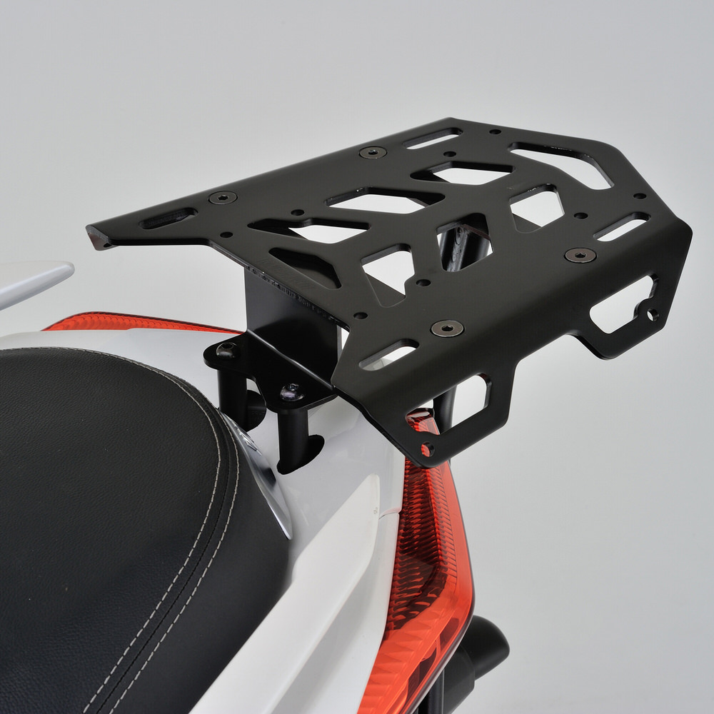 デザインされたアルミトッププレートは、非積載時の車体シルエットを崩しません。トッププレート:アルミA5052材、板厚5mm、黒塗装仕上げ。フィッティング:スチール製、電着黒塗装仕上げ。32リットル以下のGIVIのモノロックケースが装着可能。※最大積載重量:5kg※カウルの穴開け加工が必要です(型紙付属)。
