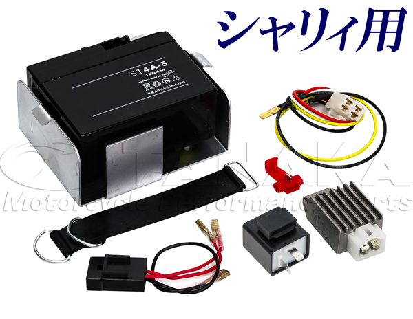本商品は6Vエンジンの電装品を簡単に12V化するコンバージョンフルセットキットになります。電装を12V化することにより様々な12V用オプションなどを装着することが可能です。バッテリーとシャリィ用オリジナルバッテリーケースまで付属いたしますので、到着後そのままお使いいただけるKITとなっております。(電球類は12V用を別途ご用意ください。)バッテリーには純正モンキーと同サイズのタイプを採用!6Vバッテリーケースをそのまま利用した小型バッテリーKITと違い、バッテリー上がりの心配もなくご利用していただけます。 【適合車種】 6vシャリィ【セット内容】・12Vバッテリー(ロットによってロゴが変わる場合があります)・シャリィフレーム専用設計バッテリーステー(日本製)・LED専用ウインカーリレー(12.8v MAX10w)・レギュレーター・専用配線・簡易説明書【注意事項】こちらのキットはLEDウインカー専用品となります。電球バルブ(バルブタイプウインカー)をご利用の場合は【CA1356】をご購入下さい。 6V CDI点火のエンジンを搭載している車両には【1357】(6Vシャリィ用12Vエンジン換装 ハーネスフルセット)をご利用ください。